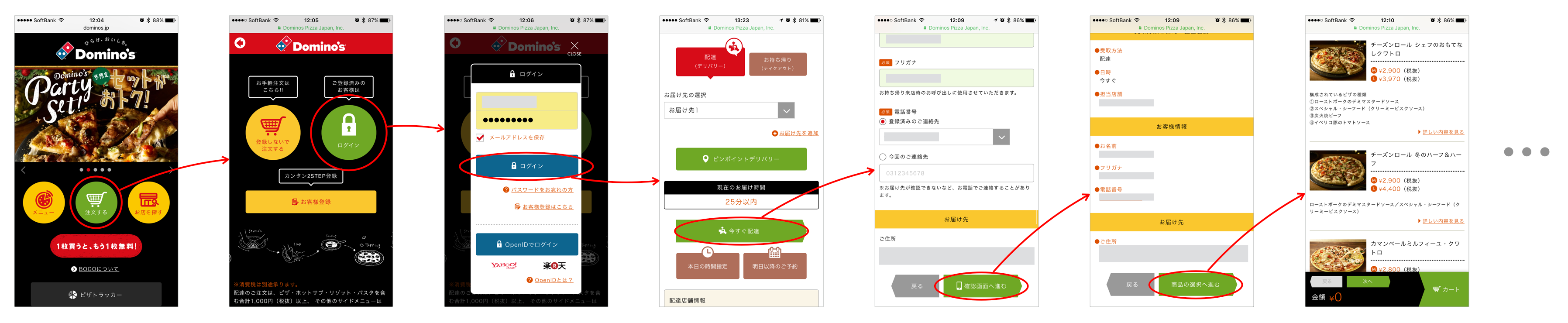 画面には「登録しないで注文する」と「ログイン」のボタンが表示されます。私は過去に登録をしているので、「ログイン」を押します。フォームにアドレスとパスワードを入力しログインします。すると配達先を指定する画面が表示され、現在の配達所要時間などがわかるのですが、その下のボタンには「今すぐ配達」と書かれています。これはよく見ると、時間指定をするかどうかの選択肢なのですが、「今すぐ配達」というラベルだけを見ると、これを押した途端に配達がはじまるように思えて、つい躊躇してしまいます。それでも他に押すべきボタンはなさそうなのでこれを押すと、自分の氏名や連絡先が表示され、拍子抜けします。そしてその下には「確認画面へ進む」というボタンがあるのです。今度こそこれを押すと最終確認画面が表示され、オーダーを確定する流れになりそうです。でも考えてみたら、私はまだピザを選んでいないのです。購入する商品をまだ選んでいないのに「確認画面」とは一体何を確認するのでしょうか。ここでもう私は「どこかで商品選択のステップを飛ばしてしまった、操作手順を間違えたのだ」と思い、トップ画面に戻ってやり直す、ということを何度か繰り返してしまいました。