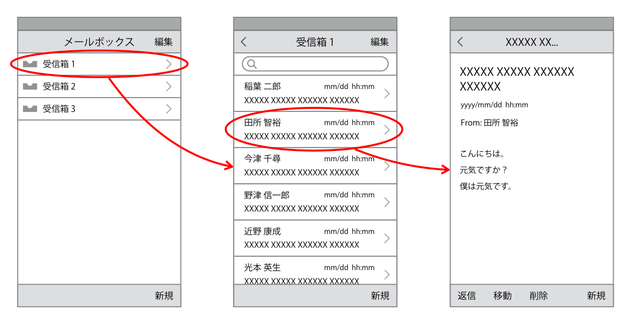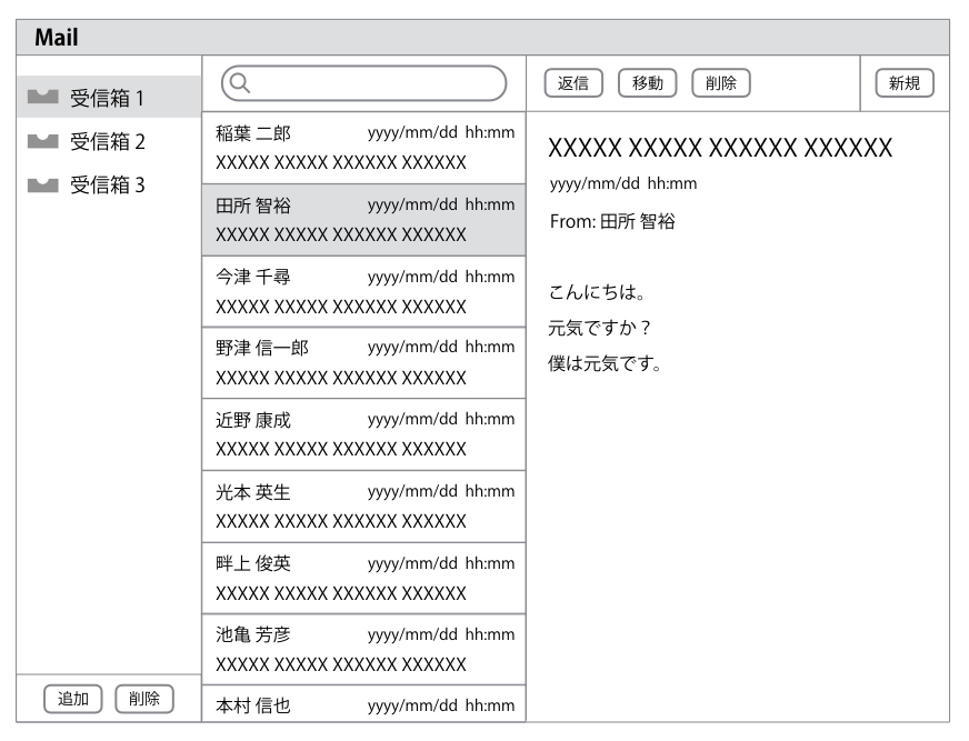 このUIモデルをワイヤーフレームにすると次のようになります。