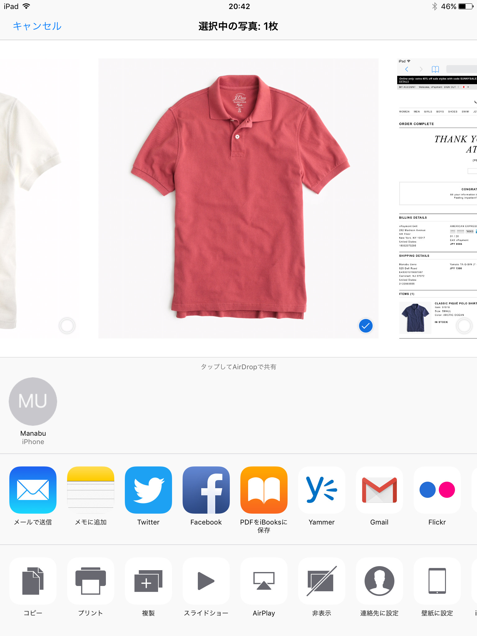 例えばこれは iPad の写真アプリですが、ある写真に対して何かの処理をしたい場合、ユーザーはまず対象のオブジェクト(写真)を選び、それからアクションを選びます。